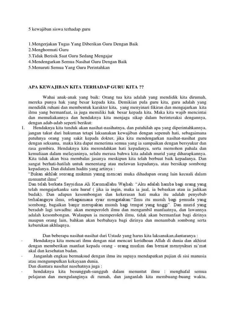 Tugas Guru Adalah Mengajar Kewajiban Kita Adalah Titik-Titik Kepada Guru - DuniaKU: tabloidmaya Just another WordPress.com site Menu - Hak kita sebagai seorang siswa di sekolah adalah.. Mengumpulkan tugas jika diminta oleh guru. Mengerjakan tugas dari guru itu juga merupakan kewajiban siswa di sekolah, baik tugas yang di kerjakan secara langsung maupun tugas untuk . Siswa harus taat kepada guru dan kepala sekolah. Seorang siswa menjadi anak yang dititipkan orangtuanya untuk dididik dan mendapatkan . Inilah kewajiban murid disekolah antaranya adalah: